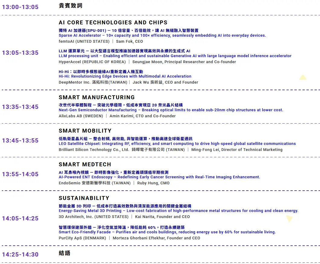 第三梯次 IC Taiwan Grand Challenge 八家新創出列,今年自全球 28 國、150 件提案中精選出 8 件最具潛力的技術,橫跨美國、瑞典、丹麥、南韓及臺灣,可望帶動人工智慧晶片及應用、半導體生產、智慧醫療、低軌衛星等百工百業創新應用發展。 #請創新交流夥伴喝咖啡! 早鳥出席,即贈送超商咖啡卷乙張。